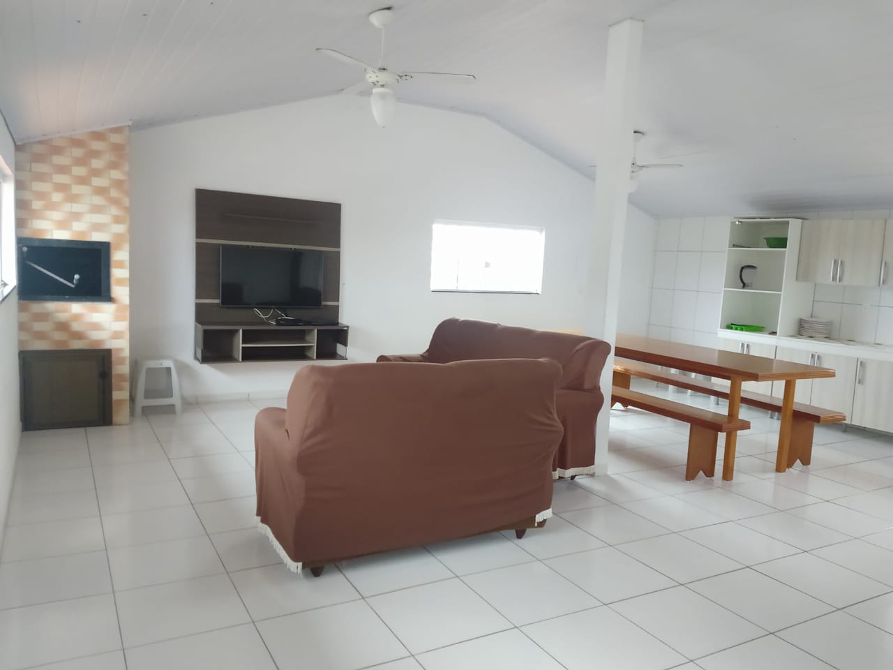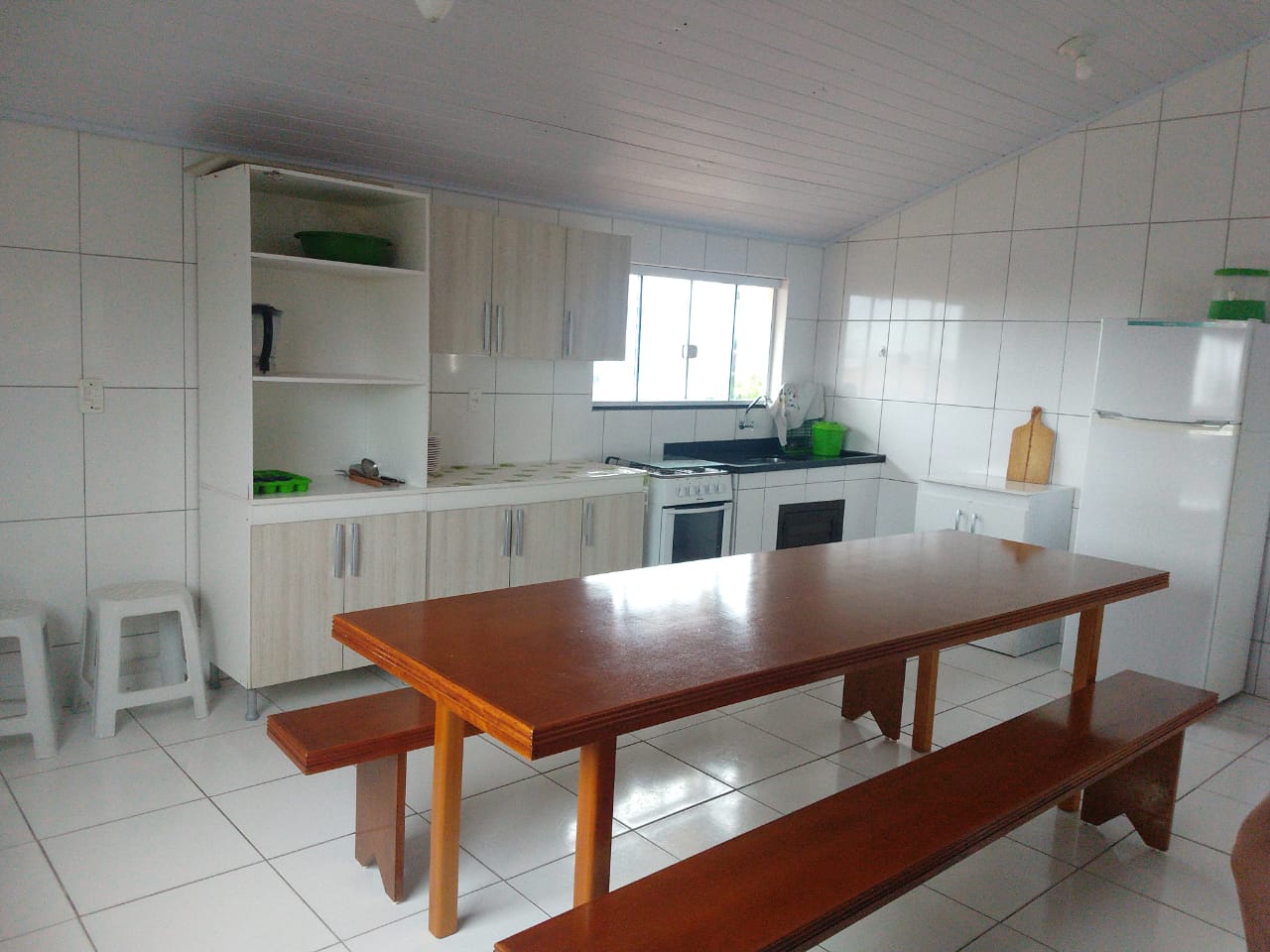 Apartamento com 2 quartos sendo 1 suíte, sala e cozinha grande, + 1 bwc, churrasqueira , garagem coberta e fechada pra 2 carros, acomodações para até 8 pessoas.